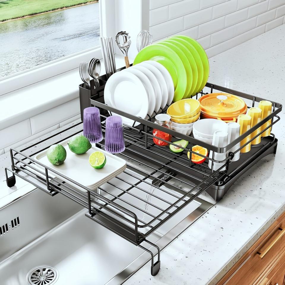 Kitchen Dish Rack Storage Organizer Steel Utensils Storage Basket Stand Drying Rack Dishes Bowls Easy Standing Installation Box