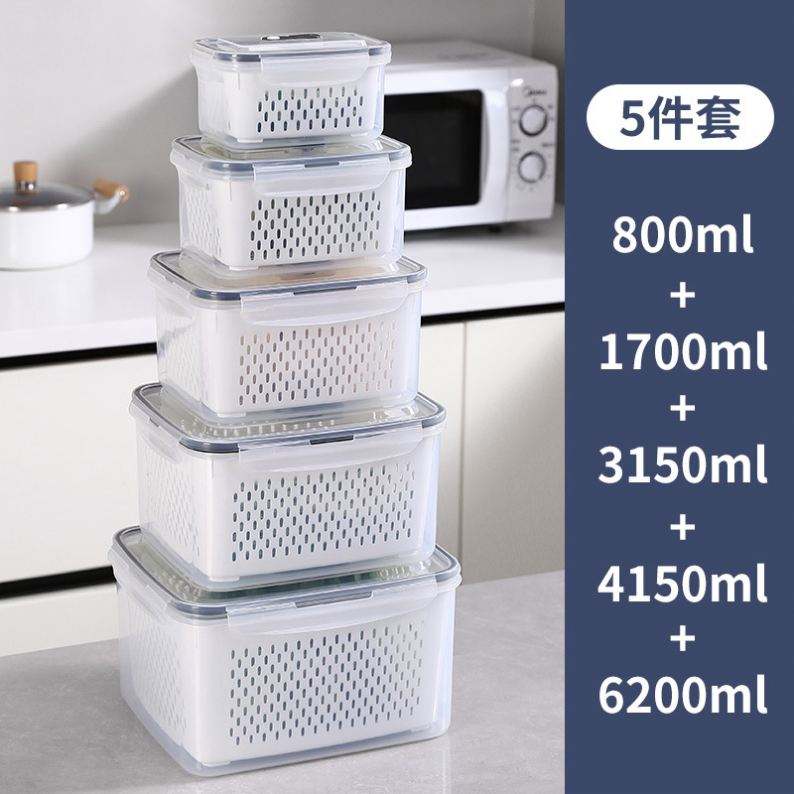Kitchen Freezer Stackable Fridge Organizer Set Refrigerator Storage Container Vegetable and Fruit Box with Lids & Drain Basket
