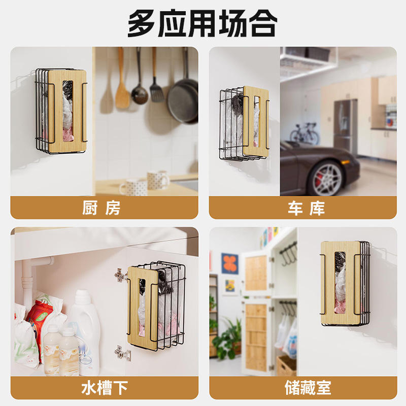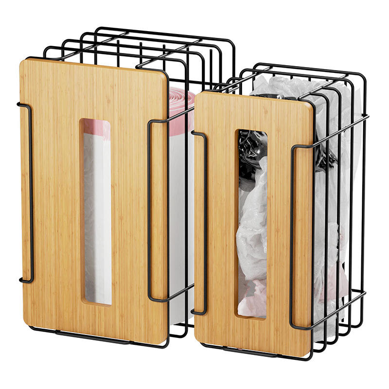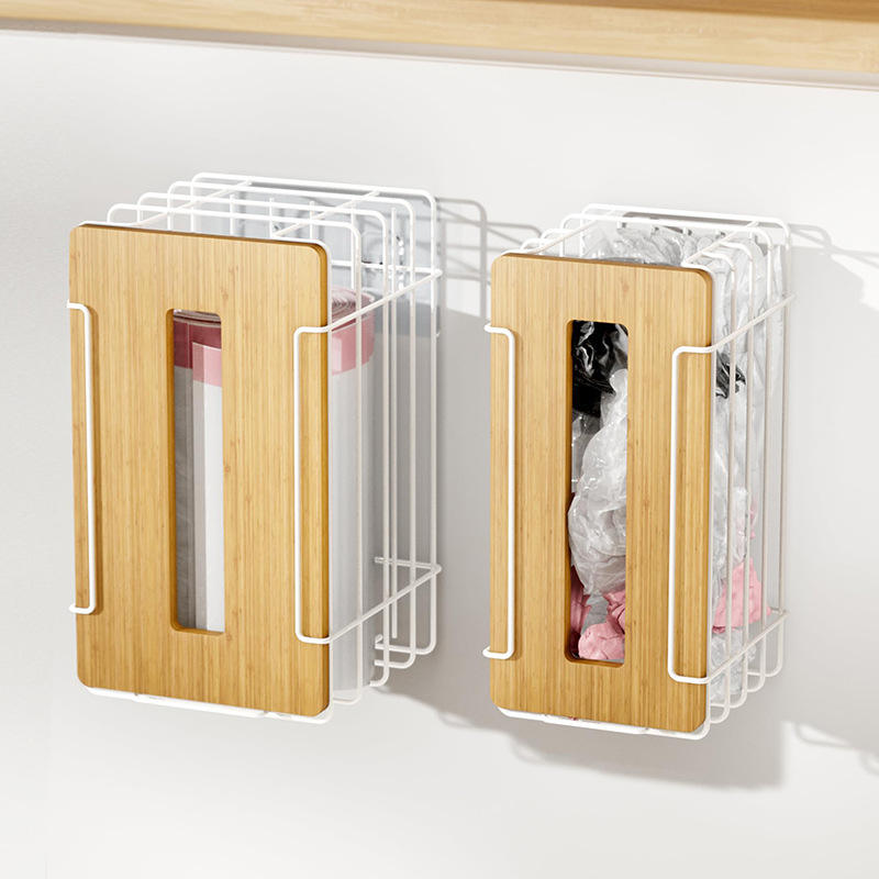 Kitchen Garbage Bag Storage Rack Wall Mounted Bamboo Cover Multi Function No Drill Kitchen Organizer 2 Pack White