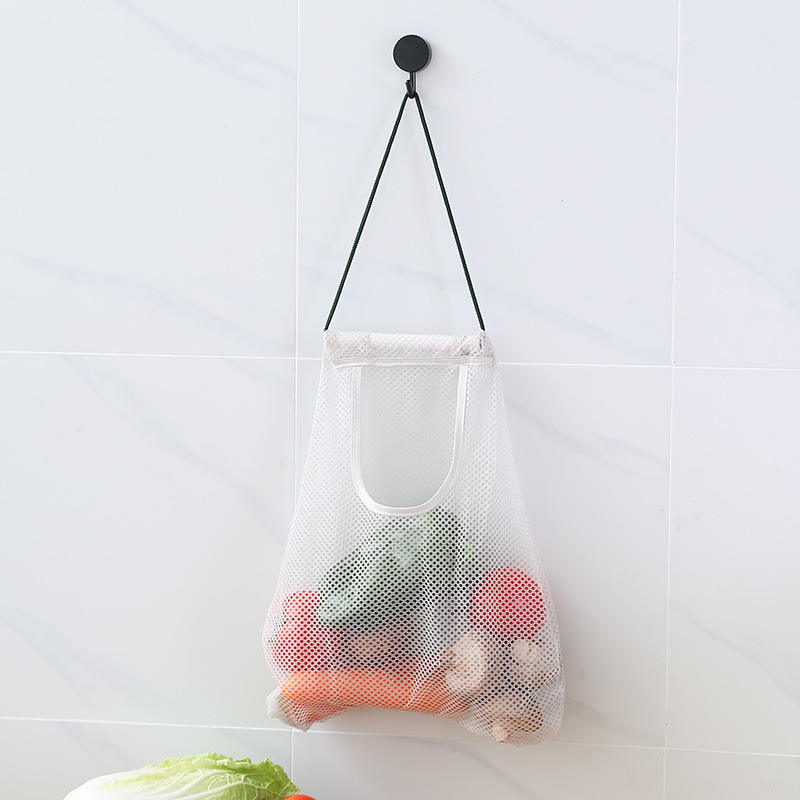 Kitchen Hanging Mesh Storage Bag For Vegetables And Fruits Breathable Portable With Hook Rectangle Shape