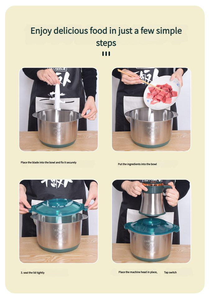 Kitchen Home Small Appliances Multifunctional Stainless Steel Meat Grinder Chopper Food Processor Mixer for Household Use