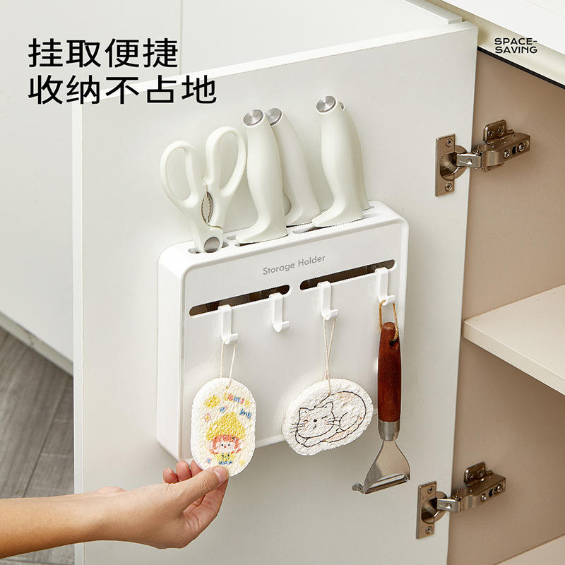 Kitchen Knife Rack Wall Mounted Storage Holder Punch Free Rectangle Durable Multi Functional
