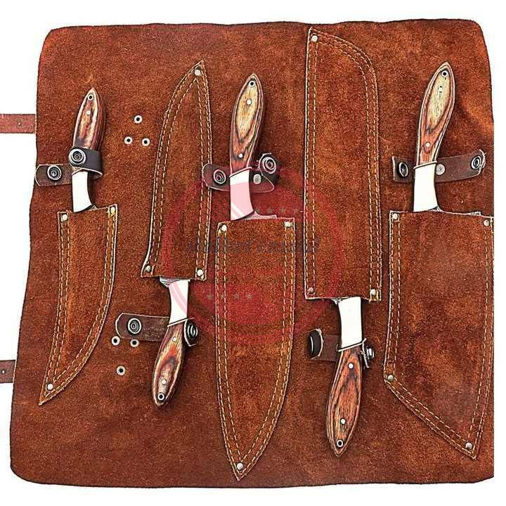Kitchen Knives Set Multifunctional Damascus Steel Chef Knife Set with Leather Roll Bag