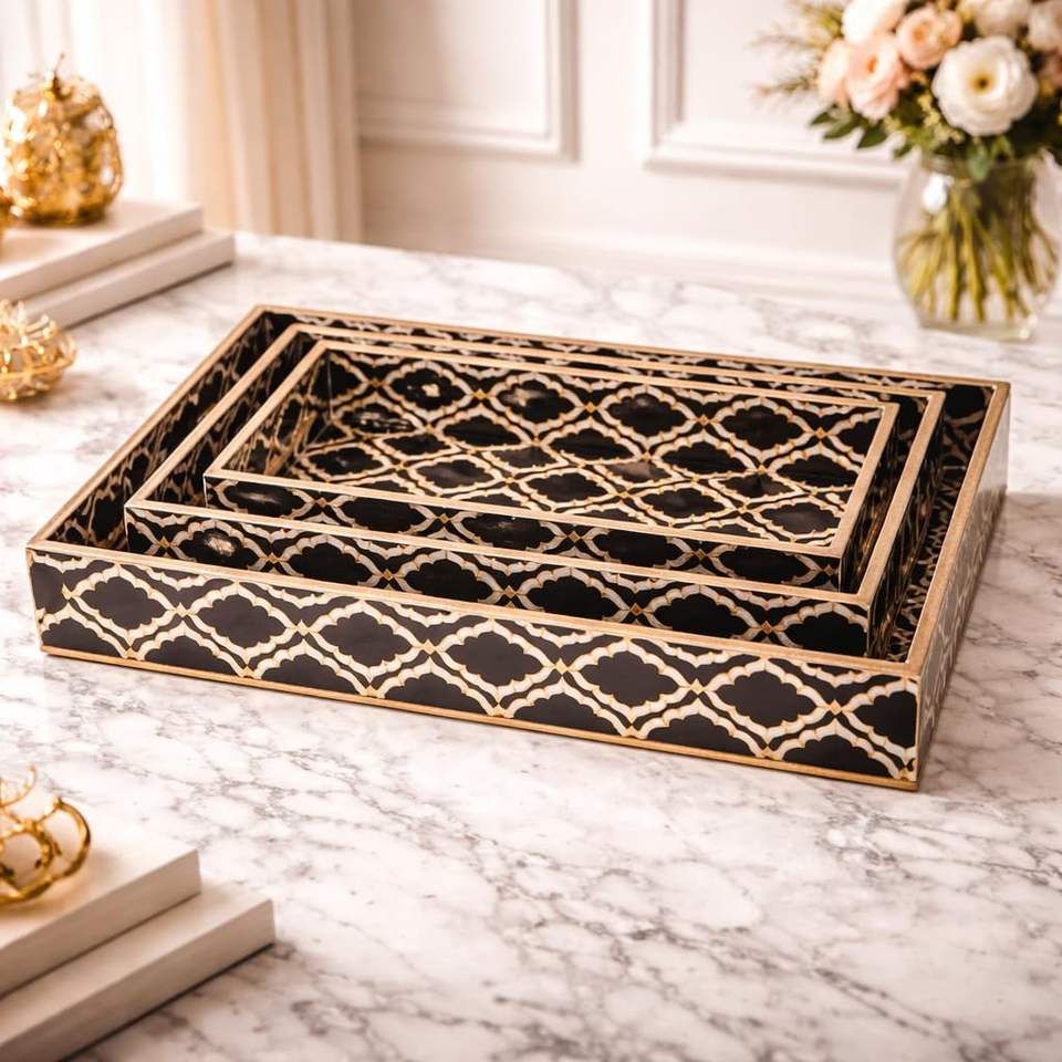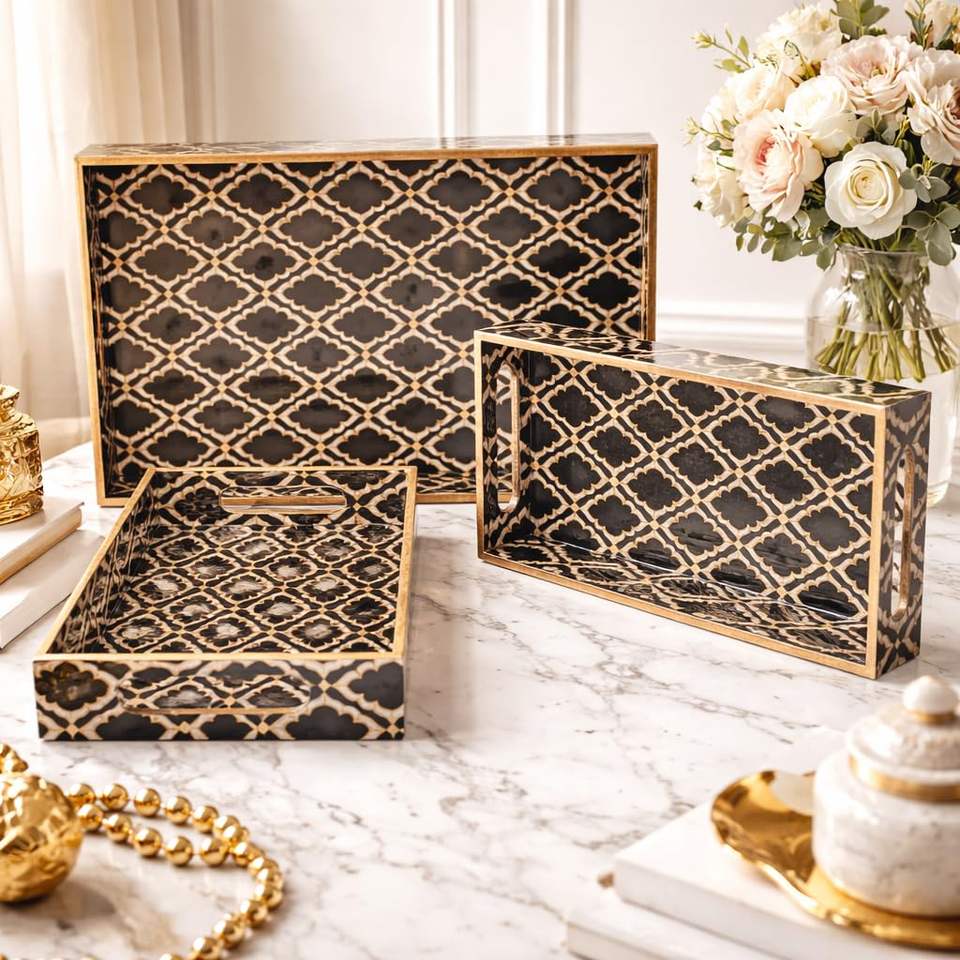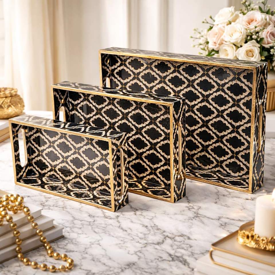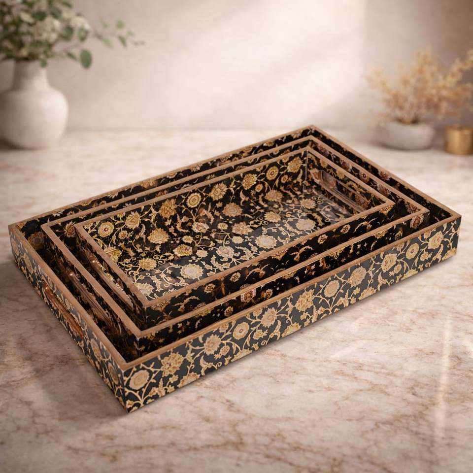 Kitchen Organizer Mango Wooden Rectangular Tray Printed Wooden Serving Tray for Home Decor and Kitchenware At Lowest Price