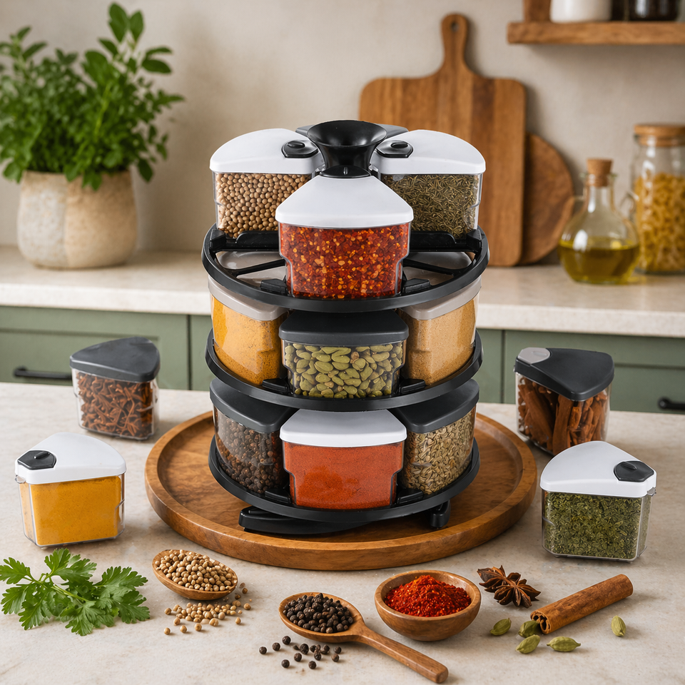 Kitchen Organizer Spice Rack Rotating 3 Tier 360° Spice Storage Rack Plastic Boxes Airtight Container Set for Kitchen Storage