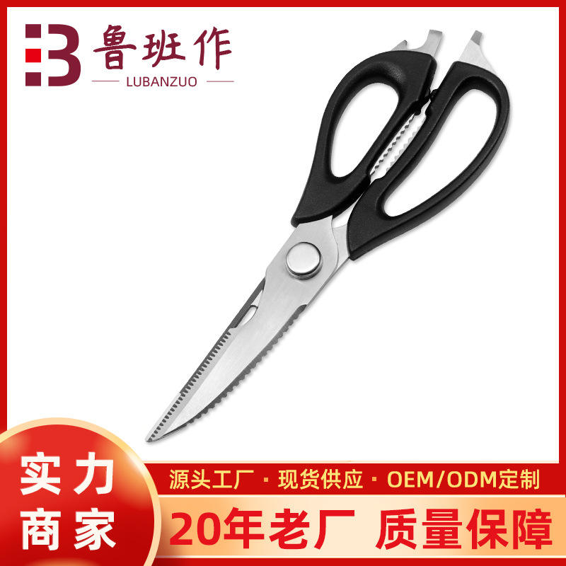 Kitchen Scissor Stainless Steel 8 In Straight Head Black Handle Multi Purpose For Chicken Vegetable Home Use