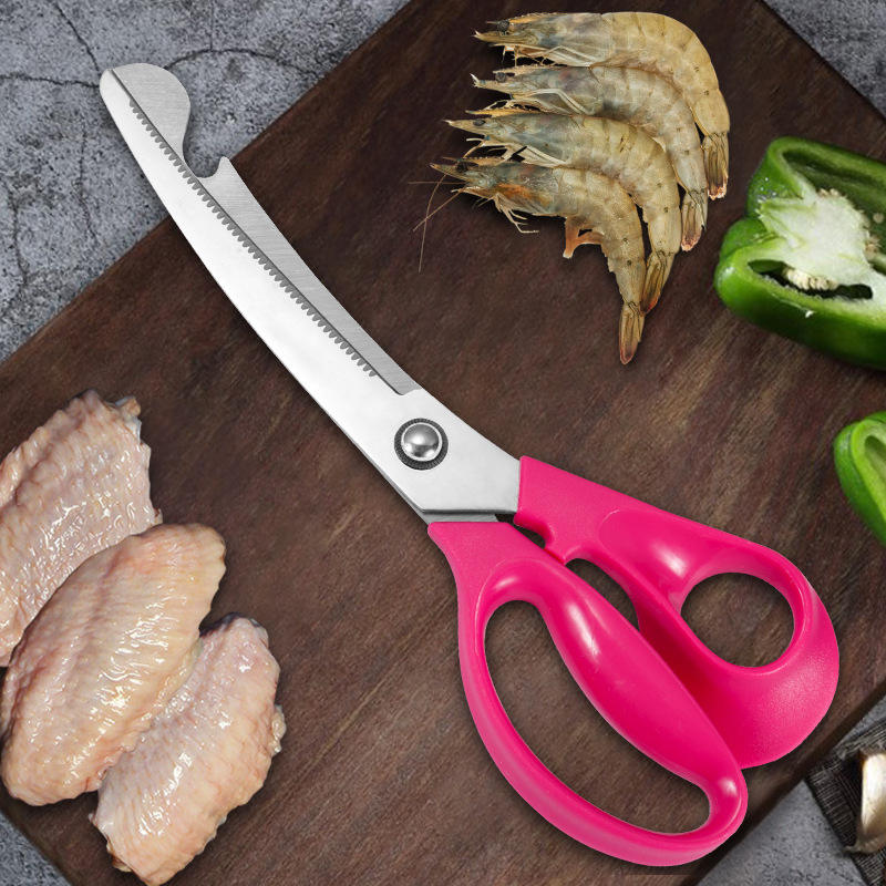 Kitchen Scissors Stainless Steel 8 In Rose Red Straight Head With Bottle Opener For Home Use
