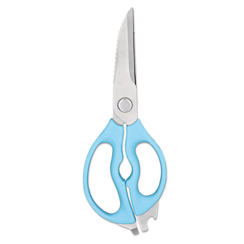 Kitchen Scissors Stainless Steel Blue Handle With Magnetic Strip For Home Use