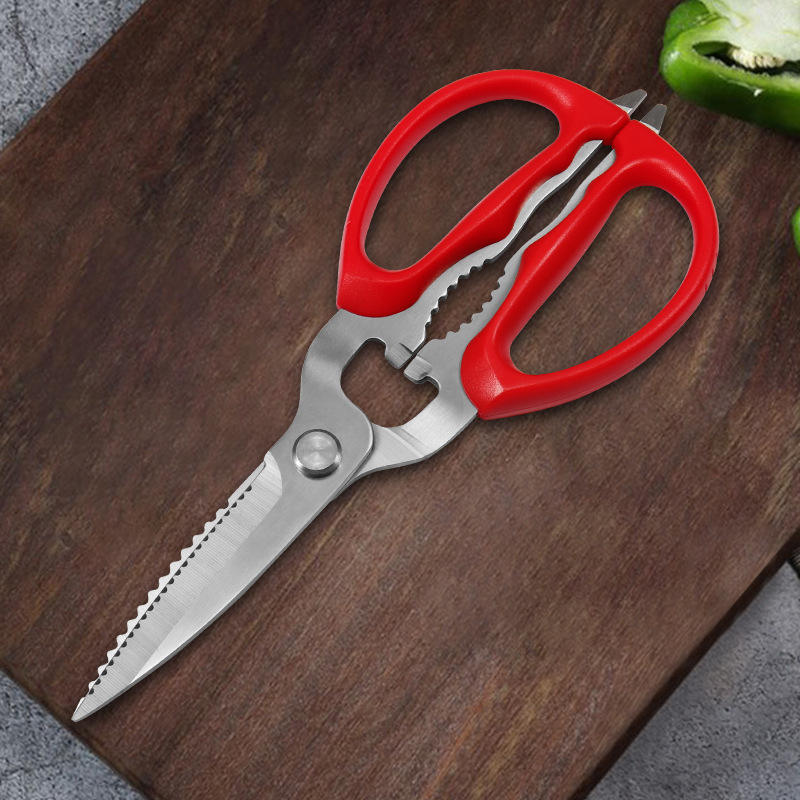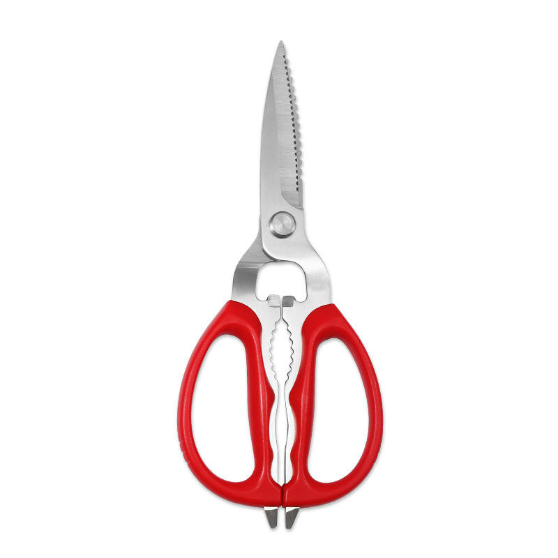 Kitchen Scissors Stainless Steel Red Handle With Bottle Opener And Walnut Cracker For Home Use