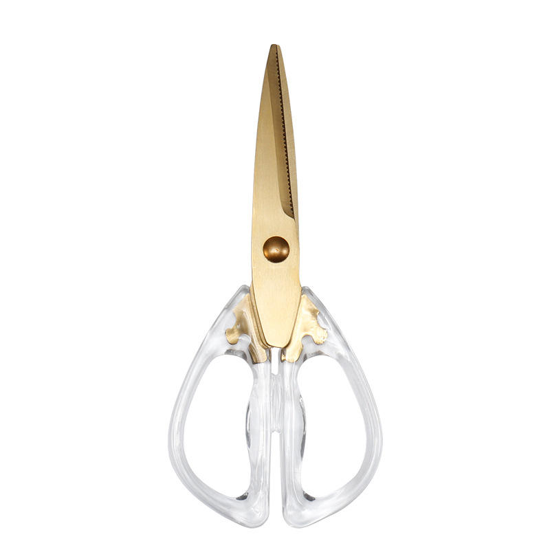 Kitchen Scissors Stainless Steel Transparent Handle Gold Electroplated For Home Use