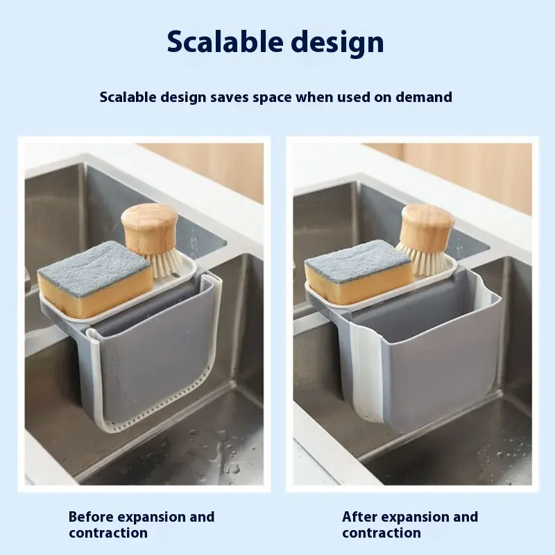 Kitchen Sink Drain Basket Rack Retractable Suction Cup Hanging Storage for Wet/Dry Trash Organizer Plastic Waste Pool Separator
