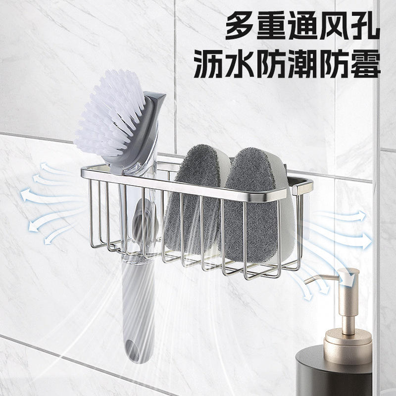 Kitchen Sink Sponge Drain Rack Stainless Steel Quick Dry Multipurpose Wall Mount Soap Holder Bathroom Cleaning Organizer