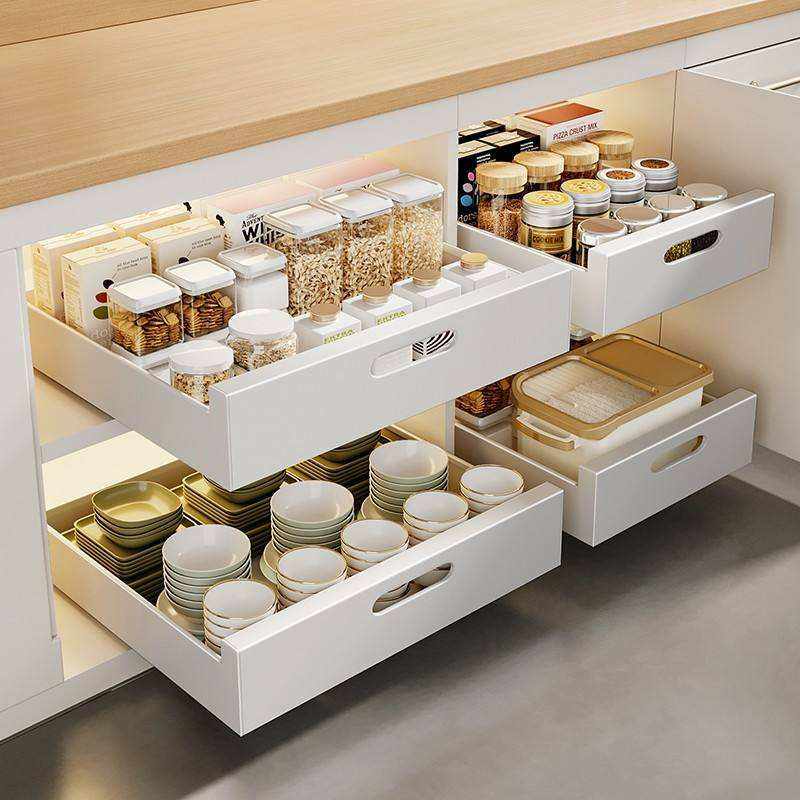 Kitchen Slide Out Shelf Pull Out Cabinet Organizer Modern Aluminum Sliding Kitchen Basket Drawers For Closet Pantry