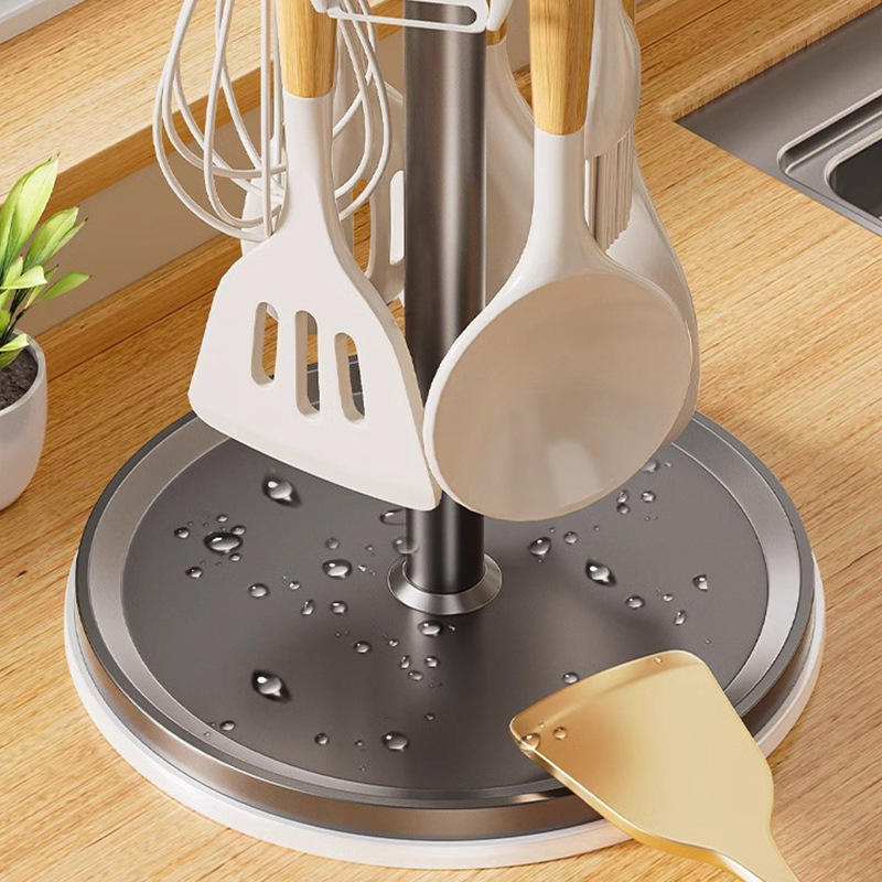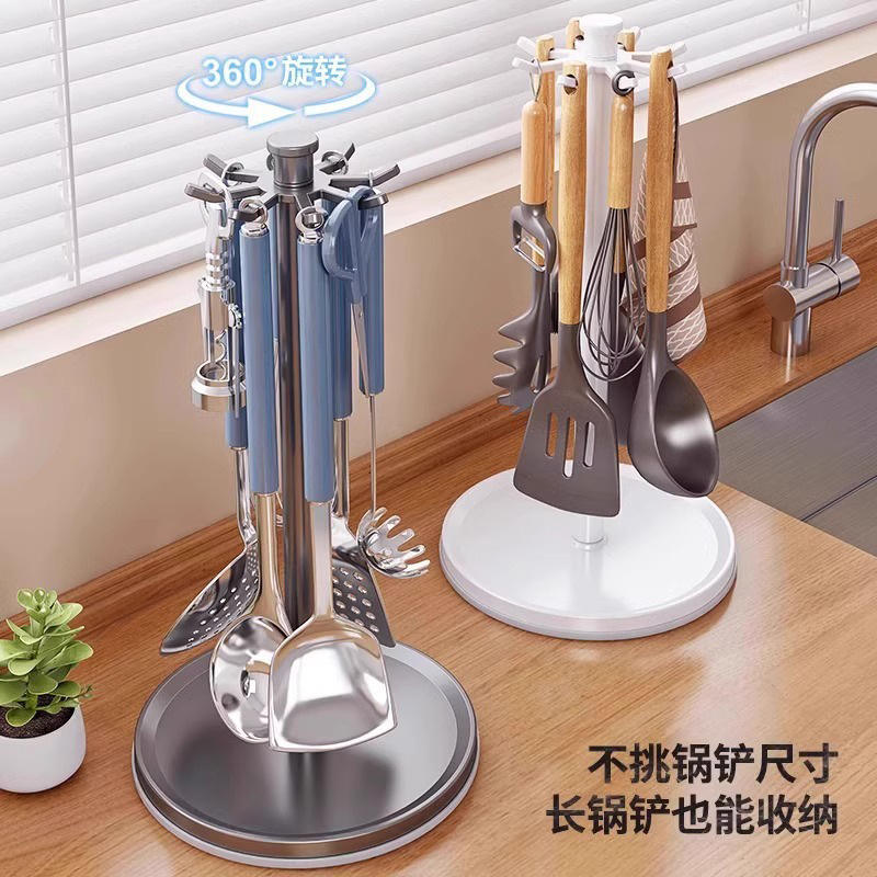 Kitchen Spatula Rack Round Rotating Hook Anti Skid Countertop Storage For Utensils Spoon Draining Bracket