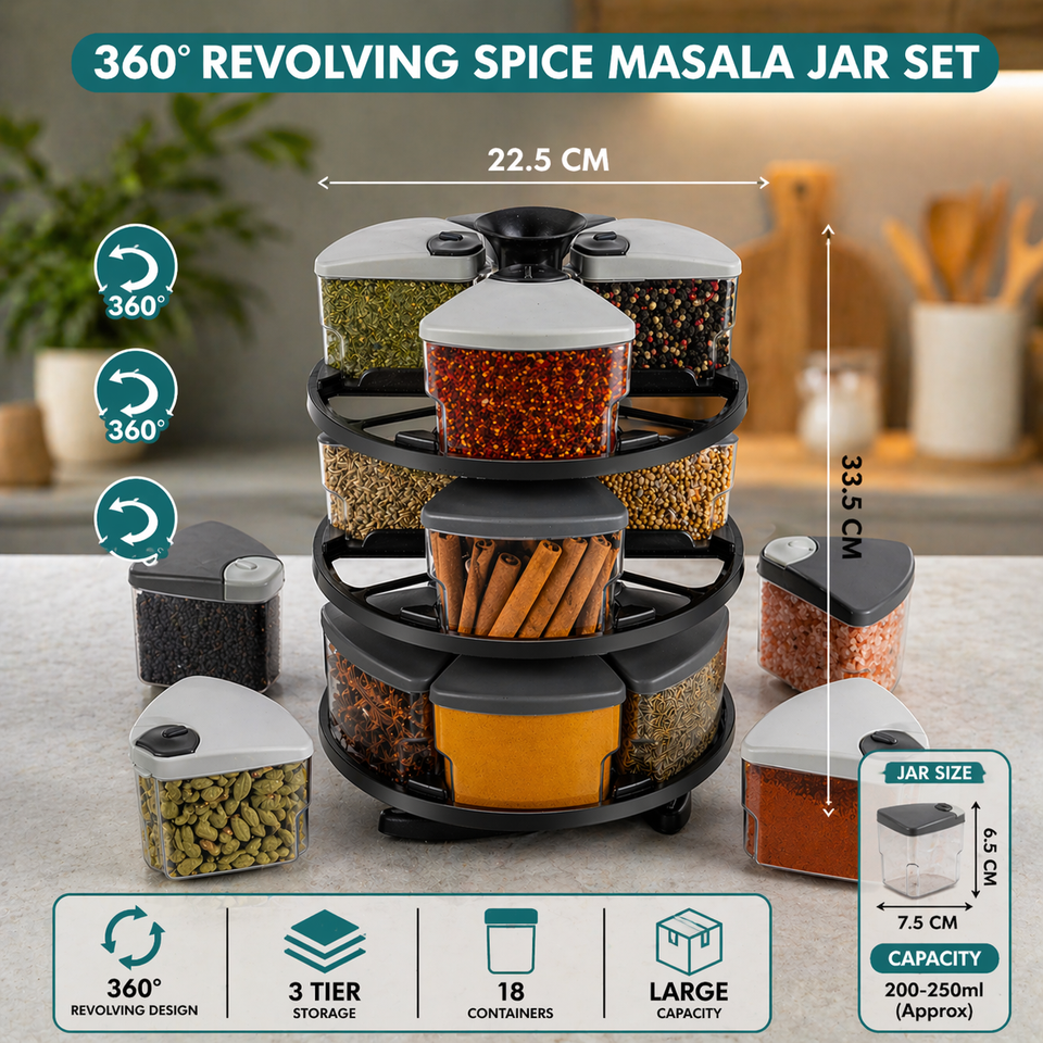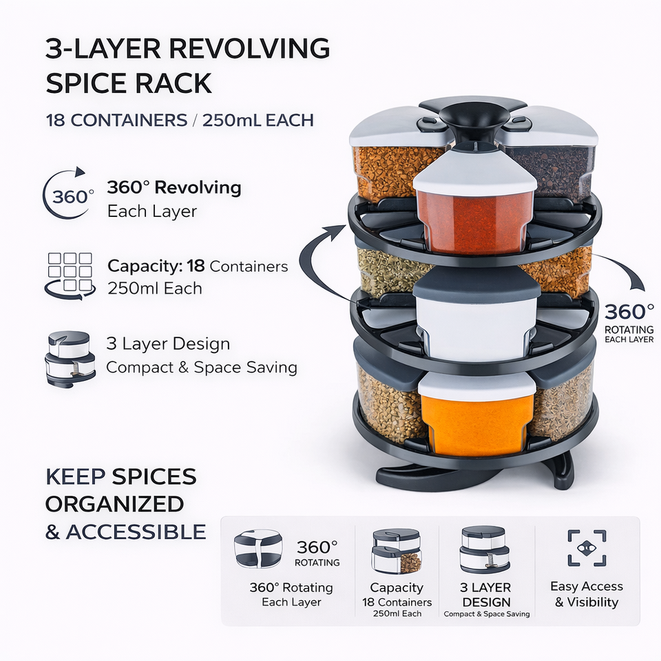 Kitchen Spice Rack Organizer 3 Layer Rotatable 360° Spice Rack with Plastic Storage Containers Airtight Kitchen Storage Box
