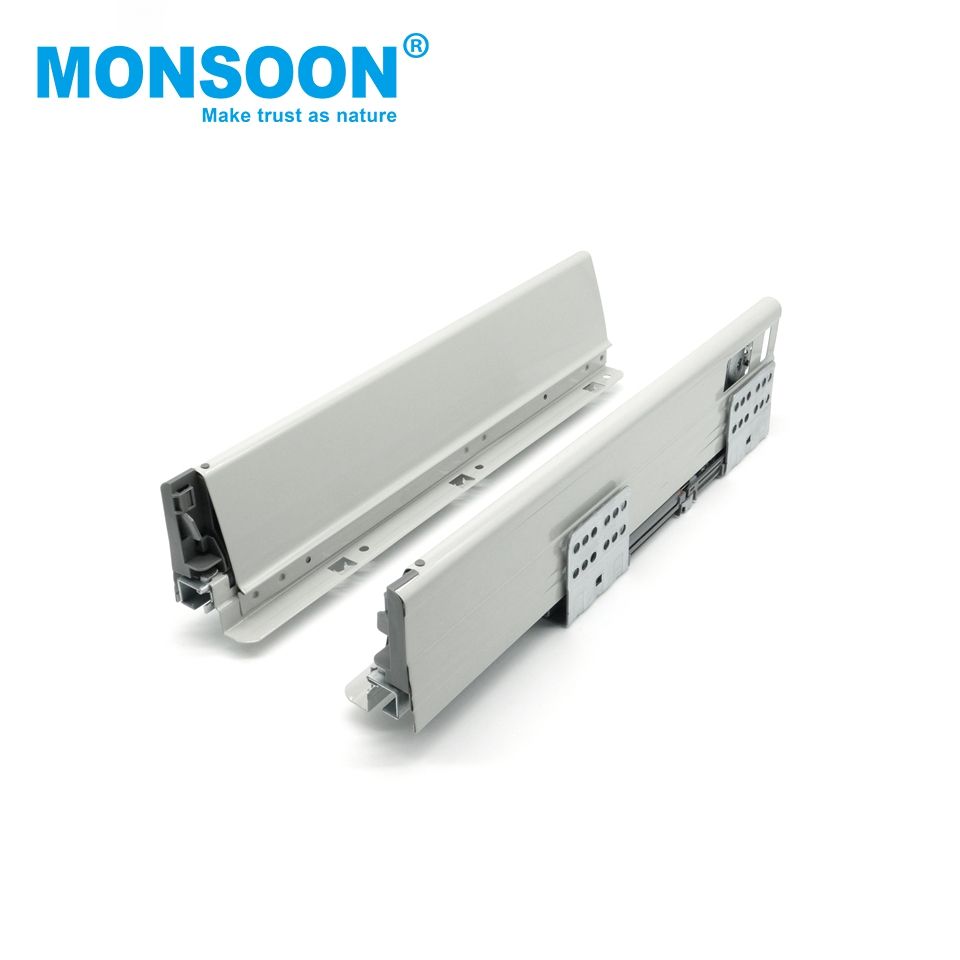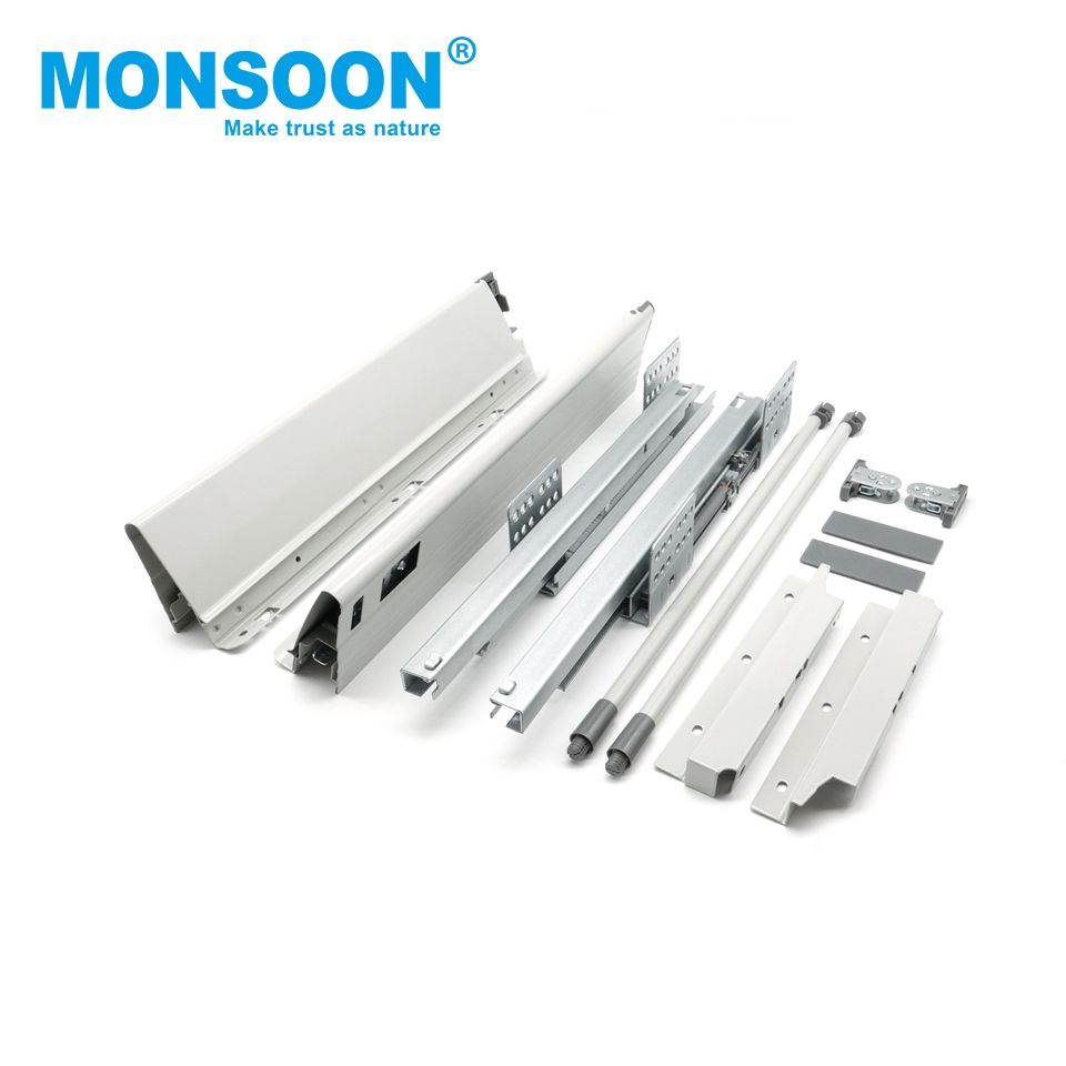 Kitchen Storage Cabinet Telescopic Drawer Guide Double Wall Undermounted White Multbox-High Furniture Drawer System with Pins