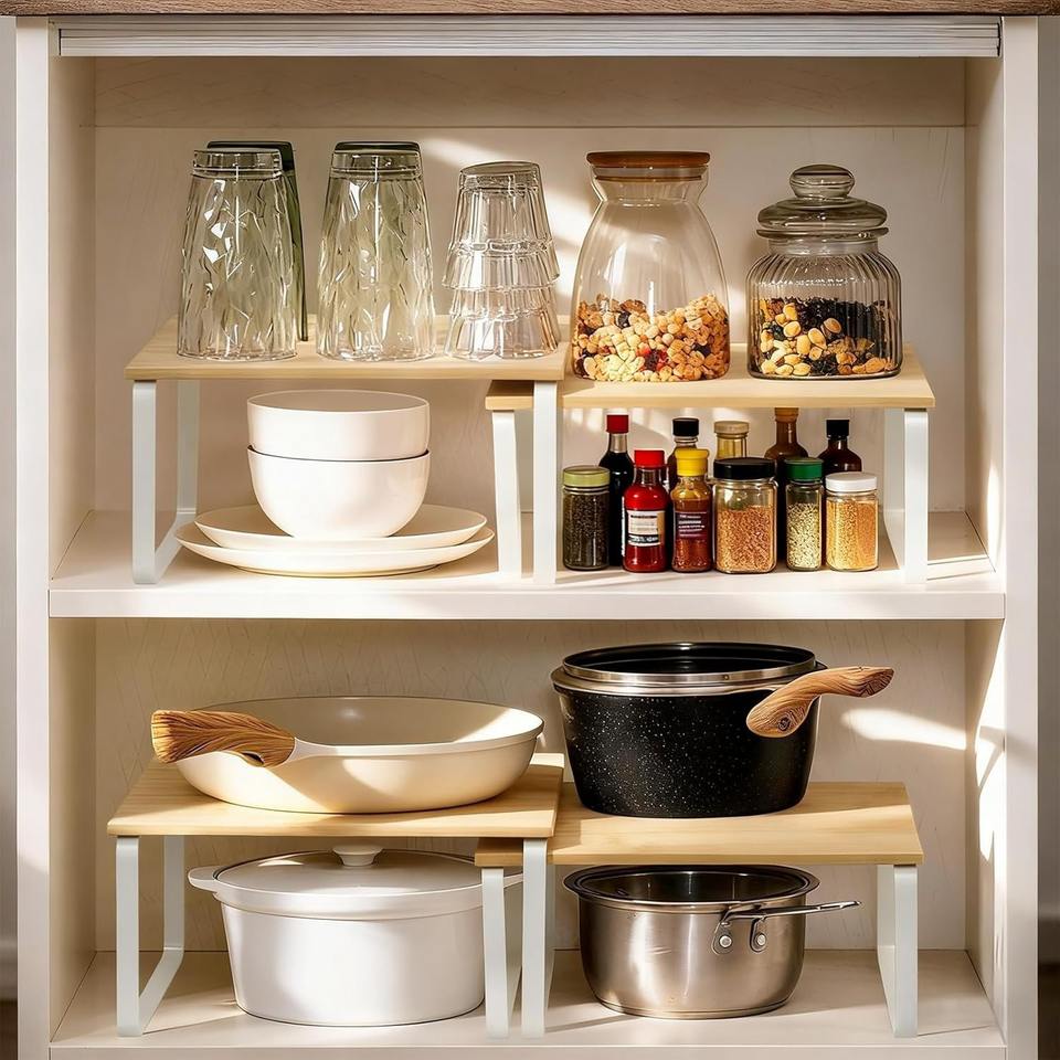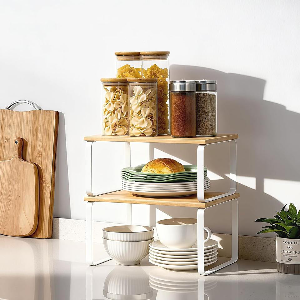 Kitchen Storage, Spice Rack, Stackable, Expandable Engineered Wood Cabinet Organizer Shelf Cabinet Organizer Shelf
