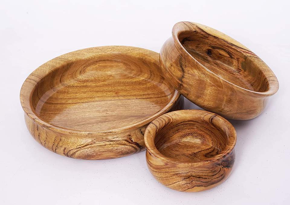 Kitchen Supplies Bamboo Bowls Set Small Medium and Large Size Reusable Wooden Serving Bowls for Dish Fruit and Cooking Use