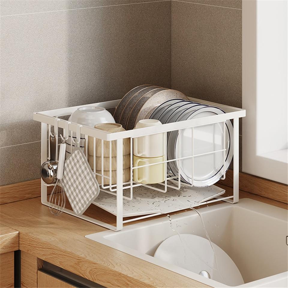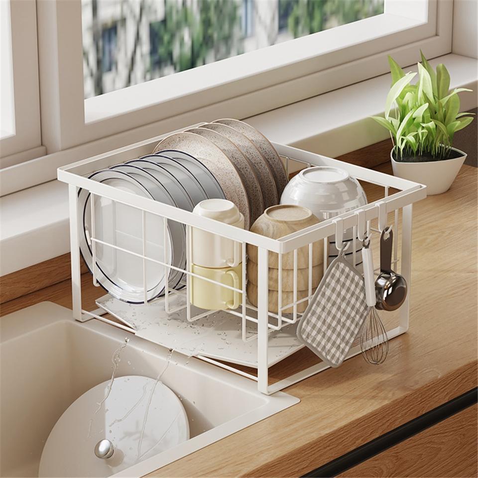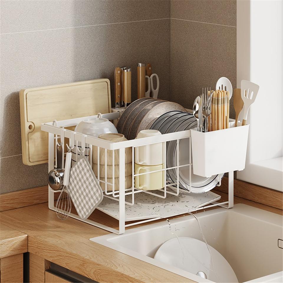 Kitchen Towel Plate Storage Rack Stainless Steel Modern Non-Folding Double-Tier Waterproof Standing Countertop Drainage Drying