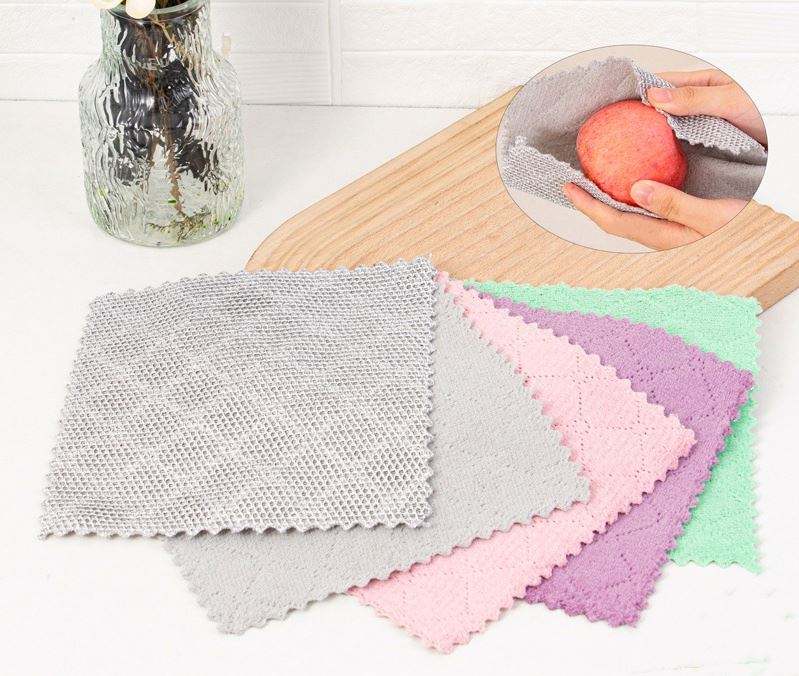 Kitchen Ultra Fine Fiber Nonstick Oil Washable Cloth Thickened Coral Velvet Fleece Wire Cleaning Cloth for Household