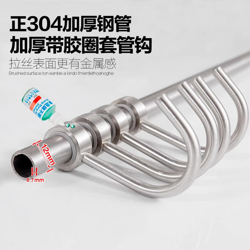 Kitchen Wall-Mounted SUS304 Stainless Steel Utensil Hanging Rack with Removable Sliding Hooks Hanger Bar for Clothing