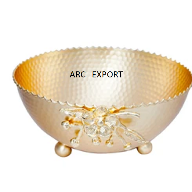 Kitchen Ware Silver Stainless Steel Metal Designer Food Bowl Stylish With Golden Leaf Metal Designing Food Mixing Serving Bowls