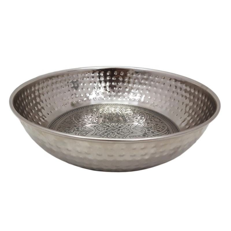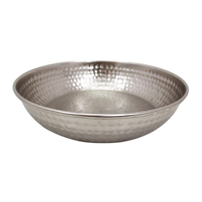 Kitchen and Table Top Iron Metal Round Serving Bowl With Side Hammered Center CHC Design Silver for Salad Fruit Bowls