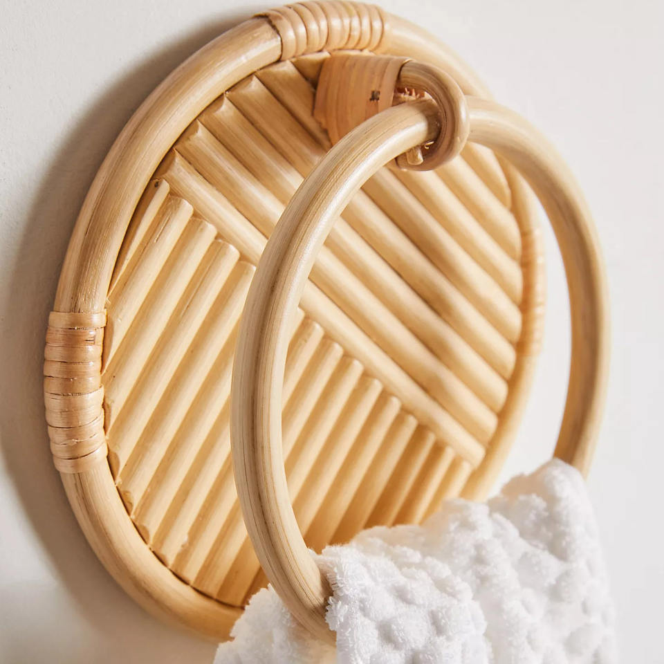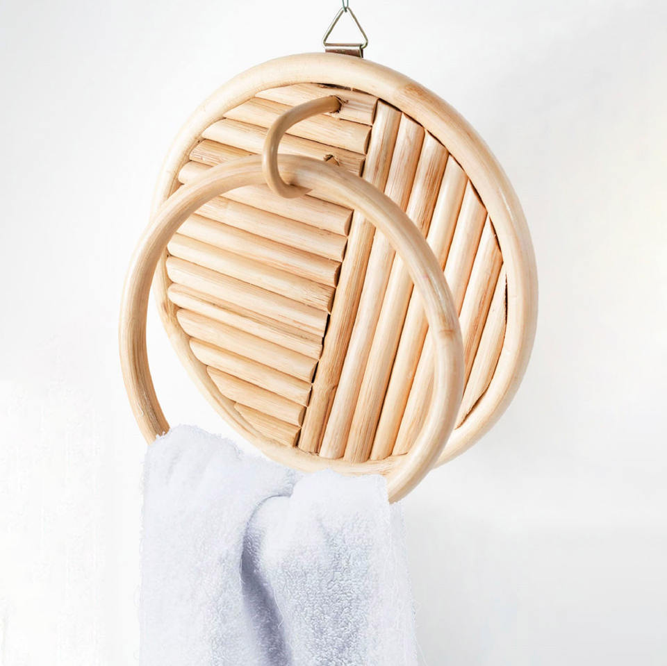 Kitchen bathroom decoration rattan towel holder flower shape wallmounted ring hanger for towels