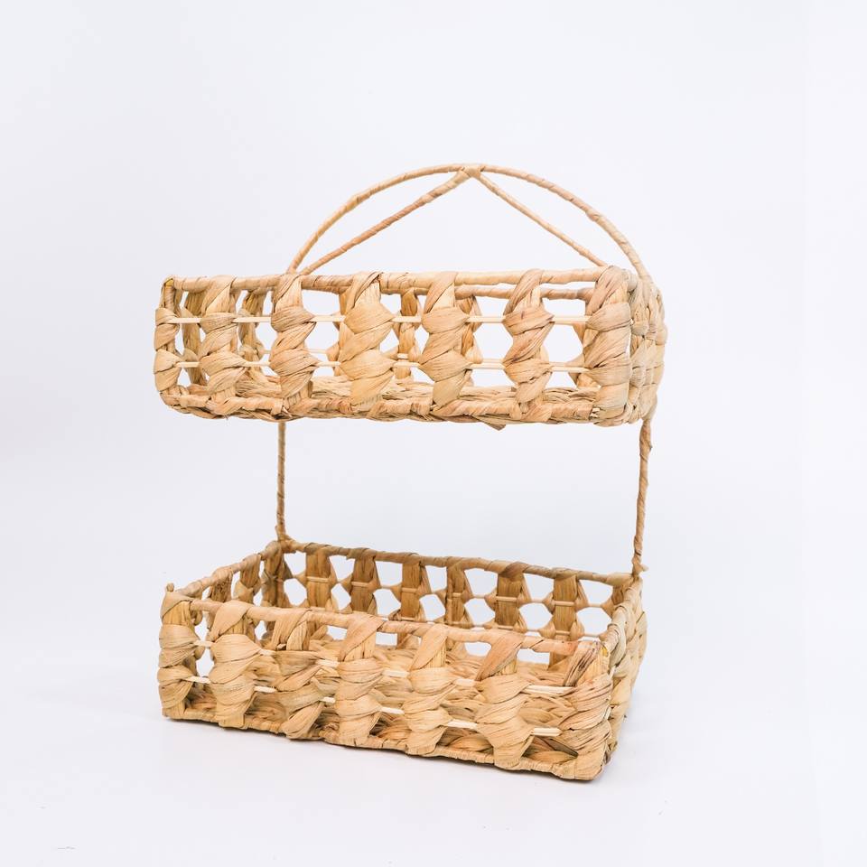 Kitchen essentials water hyacinth shelf rack for spices storage natural zero-watse organizer shelves