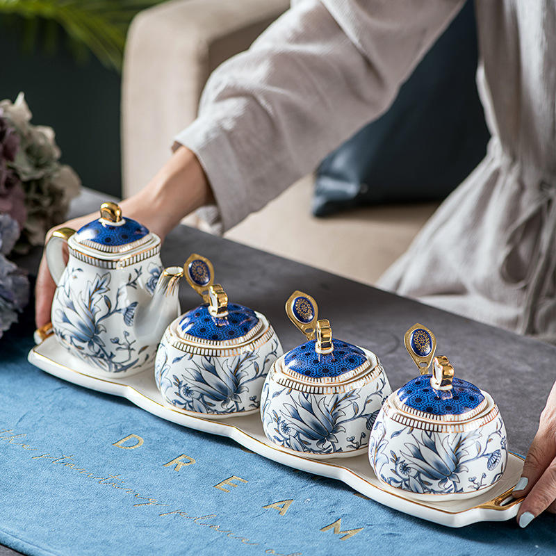 Kitchen Seasoning Jar Bone China Salt & Vinegar Jug Combination Set with Cover Modern Durable High-End Storage Box