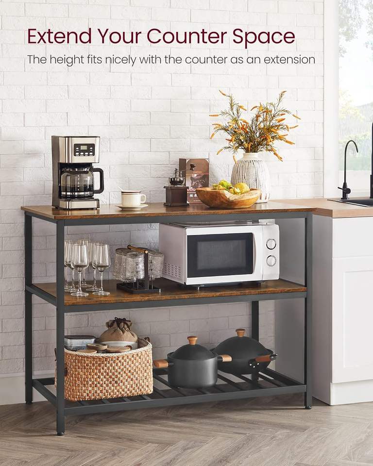 Kitchen storage rack, 3-tier low cabinet storage rack, sturdy steel structure, industrial style, easy to assemble