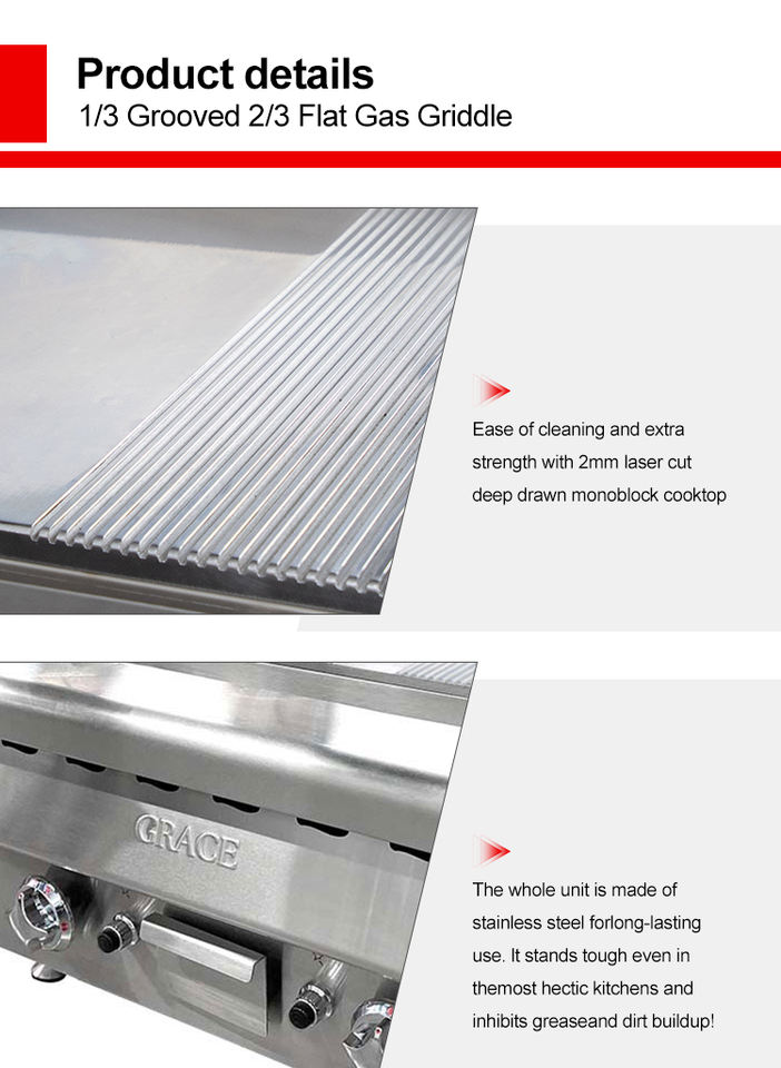 KitchenMax SS304 Gas Griddle with Splash Guard & Removable Grease Tray, Easy Clean Surface for High Volume Kitchen