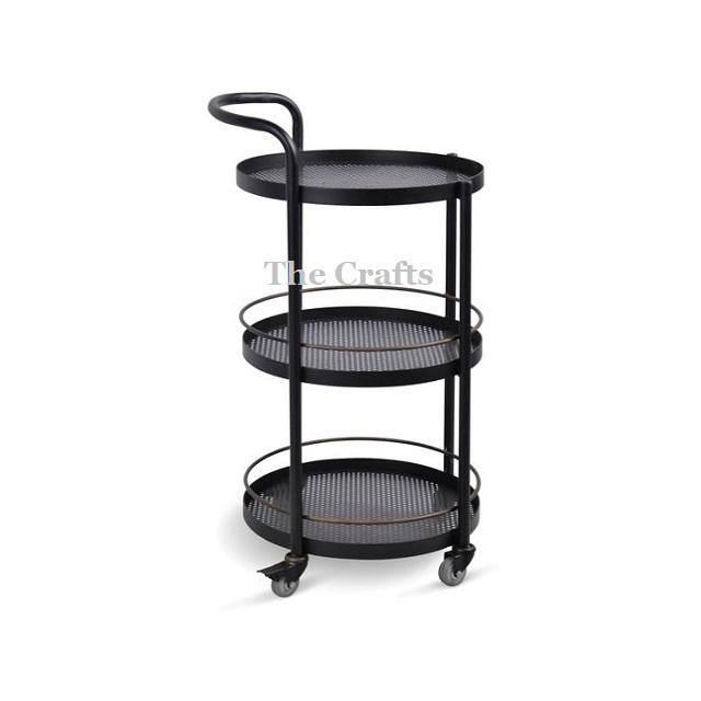 Classic Design Food Snacks Serving Trolley In Metal Black Color Serving Trolley With Four Wheels At Affordable Prices