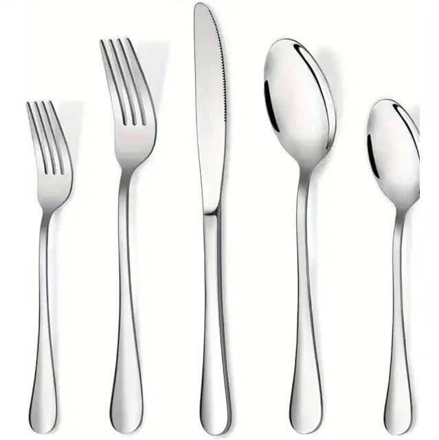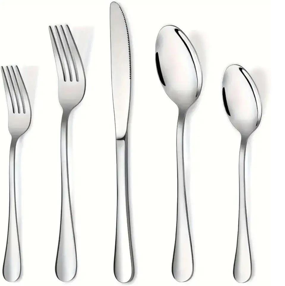 Kitchenware Cutlery Set Stainless Steel Fully Metal Design Silver Cutlery Tools Shiny Finishing Design Flatware Cutlery Set