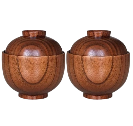 Kitchenware Handcrafted Round Mango Wood Sugar Bowl Set With Lid Home Salt and Pepper Bowl Set