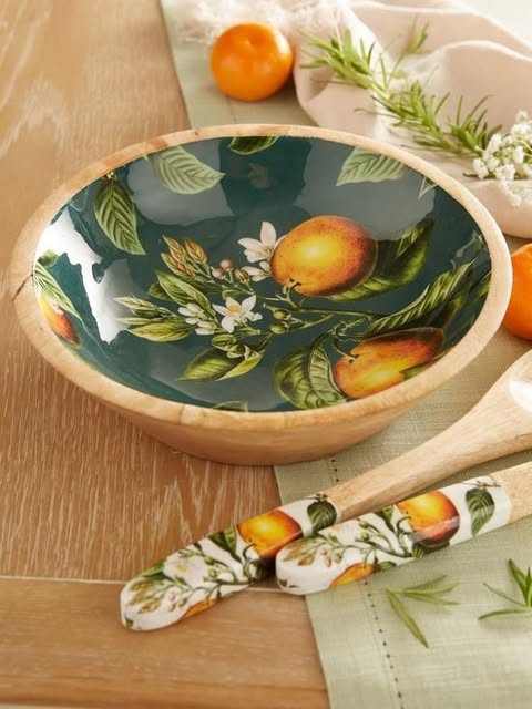 Kitchenware Salad Bowl with Enamel Printed Wooden Bowls For Catering Serving Salad Pasta And Soup Serving Bowls