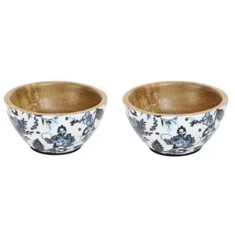 Kitchenware Wooden Serving Bowls With Enamel Printed Soup Pasta Bowls for Tableware