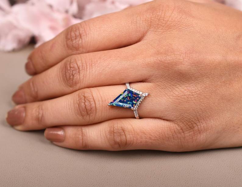 Kite Black Opal Engagement Ring Sterling Silver Elegant Bridal Gemstone Jewelry For Women