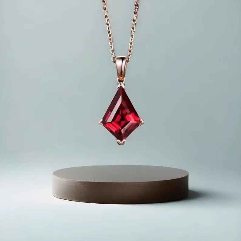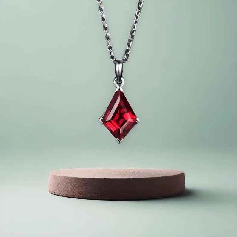 Kite Red Garnet Necklace Children's & Women's Anniversary Bridal Gift Mother 925 Sterling Silver 14k Rose Gold Plated Pendant