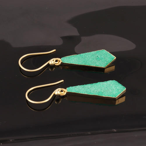 Kite Shape Crystal Jewelry Natural Green Sugar Agate Druzy Dangle Drop Earring 18k Gold Electroplated Edged Simple Style Earring