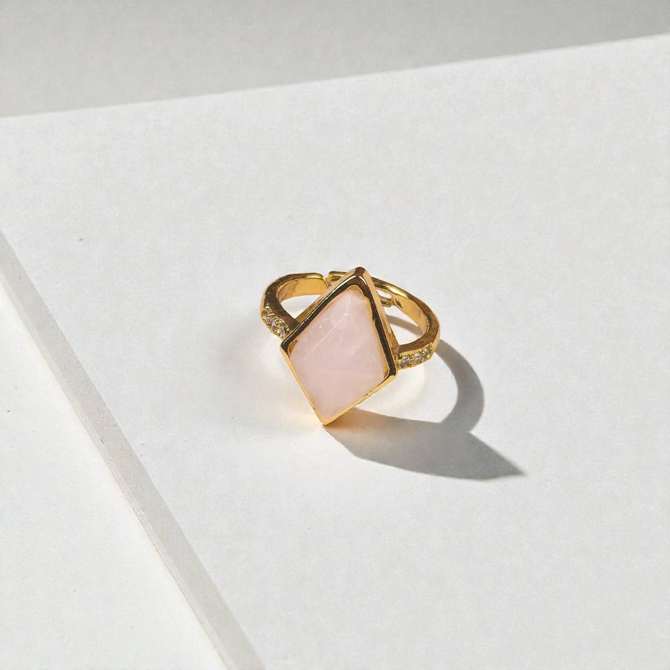 Kite Shape Rose Quartz Gemstone Ring — 10x15mm Natural Stone 925 Sterling Silver Ring - Gold Plated Handmade Ring