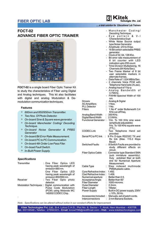 Kitek FOCT-02 Advance Fiber Optics Communication Trainer Kit for Educational Labs and Communication Studies