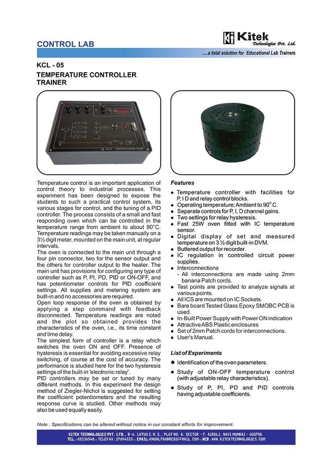 Kitek Model KCL 05 High Quality Temperature Controller Trainer Kit with Built-in Power Supply for Education