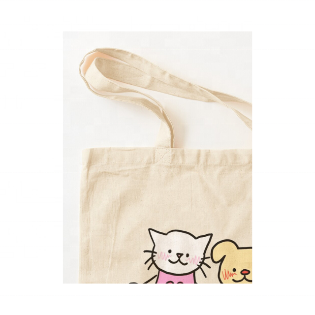 Kitty Cat 100% Cotton Embroidered Canvas Tote Bag Reusable Large GOTS Certified Eco Friendly Travel Shoulder Bag for Branding