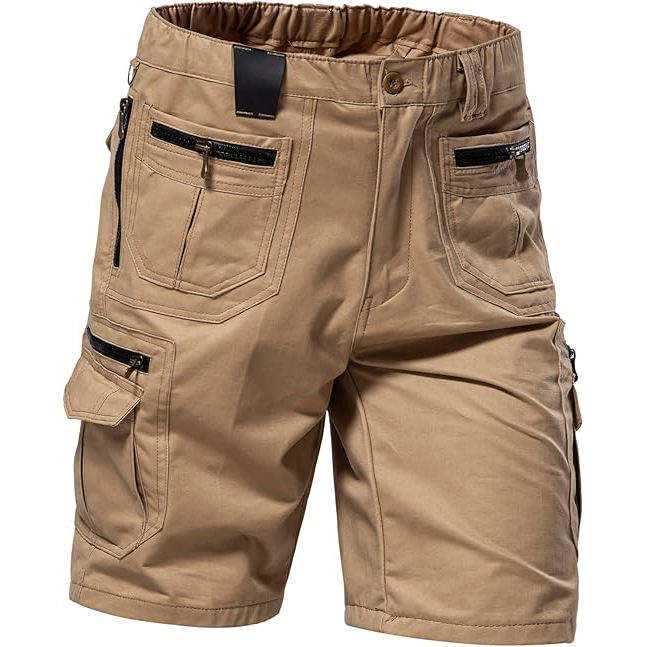 Kivotech Men's Casual Cotton Shorts Solid Color 6 Pockets with zipper Best Price-OEM Service Available