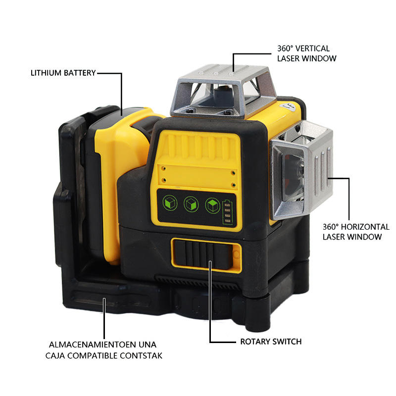 Km 12-Line Green Laser Level 535Nm 360 Degree Rotary For Indoor Outdoor Home Renovation