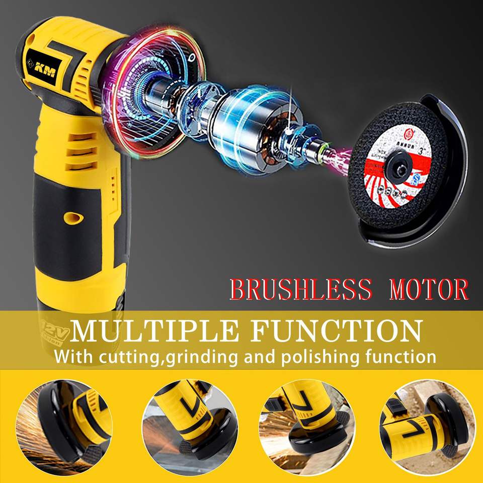 Km 12V Brushed Mini Angle Grinder Rechargeable Battery Operated Cutting And Grinding Tool For Diy Projects
