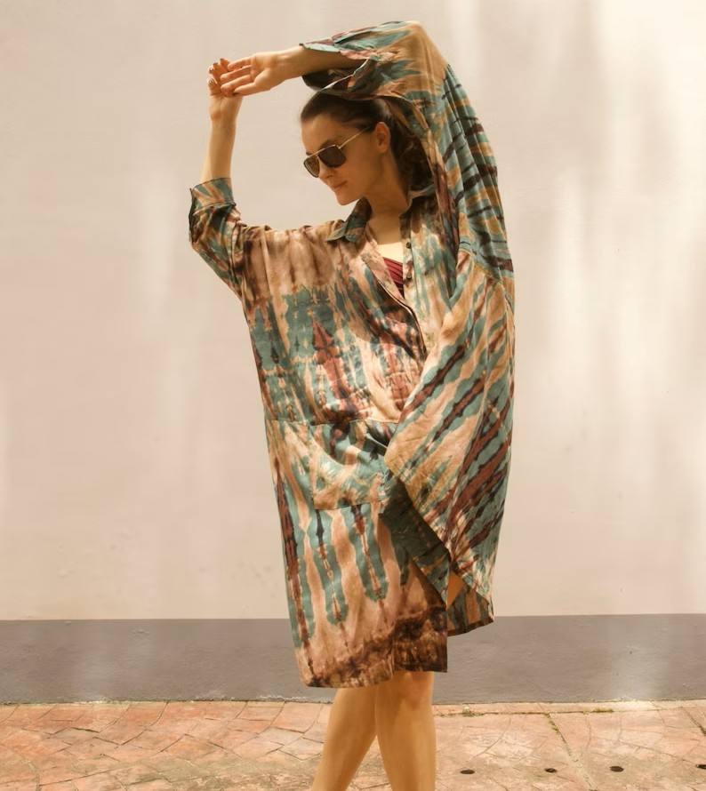 Knee Length Shirt 100% Rayon Multi-Dye Full Sleeve Dress Party Resort Beach Summer Wear Cover Dress One-Piece Oversized Shirt
