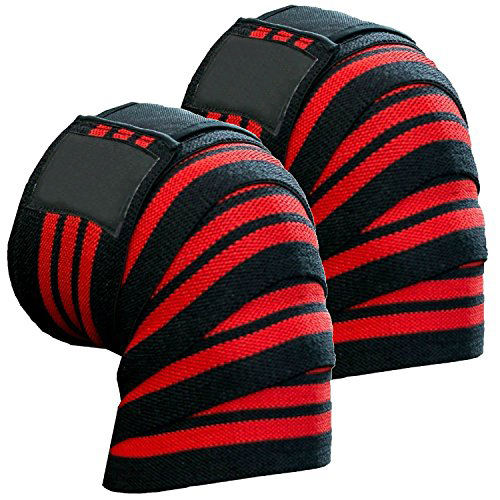 Knee Wraps (Pair) with Strap for Squats, Weightlifting, Powerlifting, Leg Press, and Cross Training - Flexible 39 inch Knee Wrap