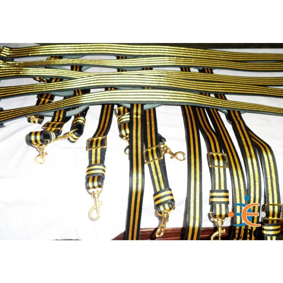 TWO LEATHER BACKED SLINGSGOLD METAL BUCKLE